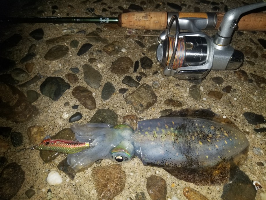 小潮でも少しの流れを期待しましたが全然潮が動かず、キャストしたエギが真っ直ぐ帰ってくる状況。