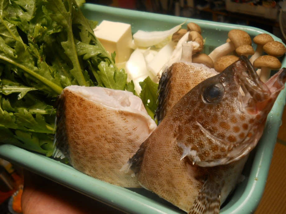 日曜日に釣獲してきたオオモンハタ2匹を使って水炊き。