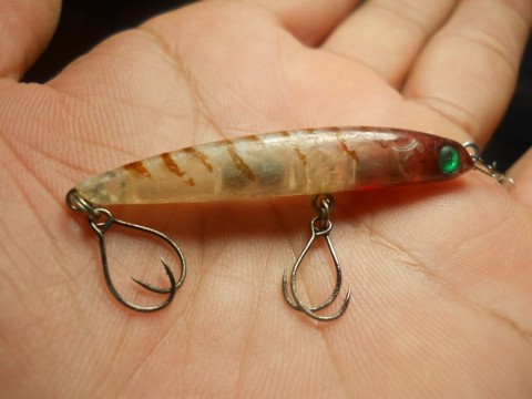 トレブルフックより針掛かりが悪いような気がしないでもないけれど、トレブルフックでも針外れする時もあるし、アタっても掛かんない事も有るしね。