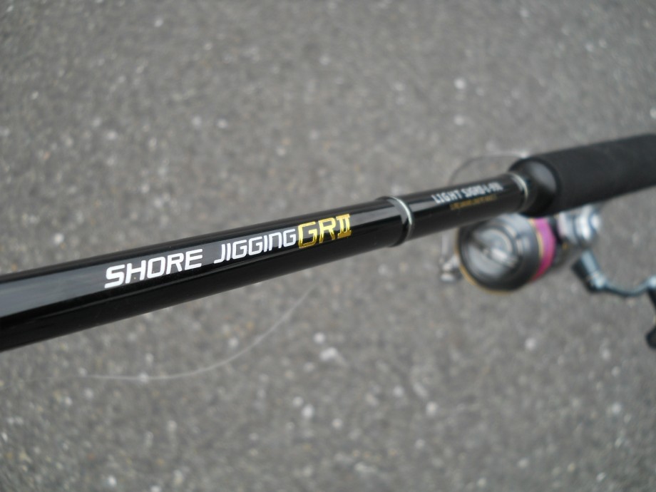 半分はドライブ気分で前回と同じ漁港に着いたのが11時を少し過ぎたころ、今回使用するのは昨日買ってきたポイントオリジナルブランド、リアルメソッドのライトショアジギングロッド SJGRⅡ-L-93L に、08バイオマスター4000S。