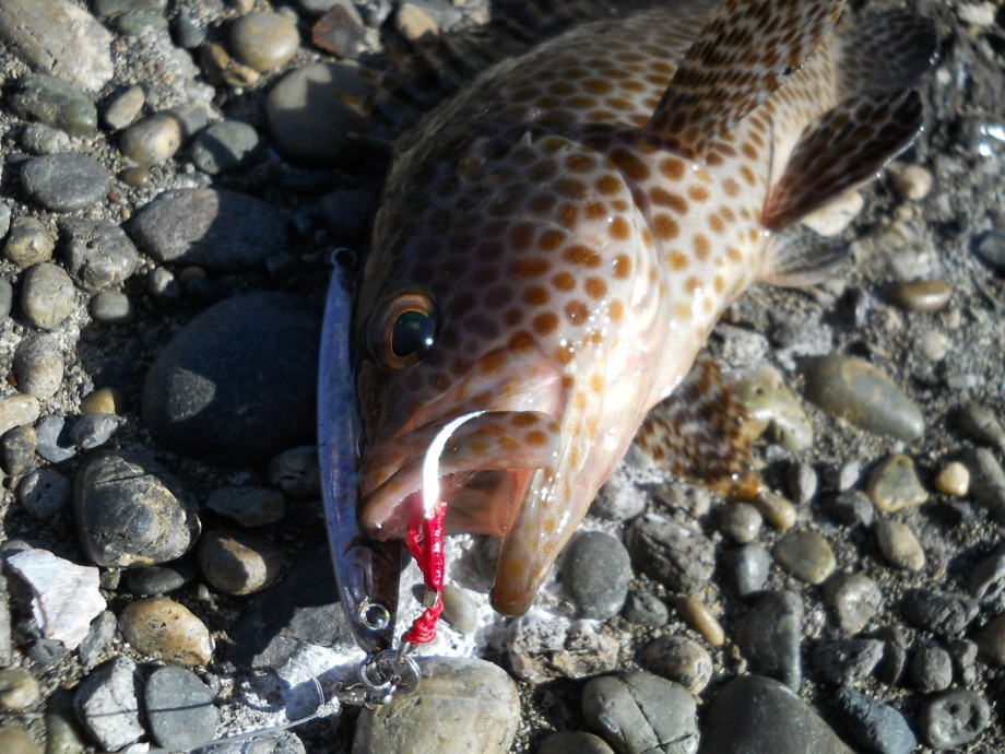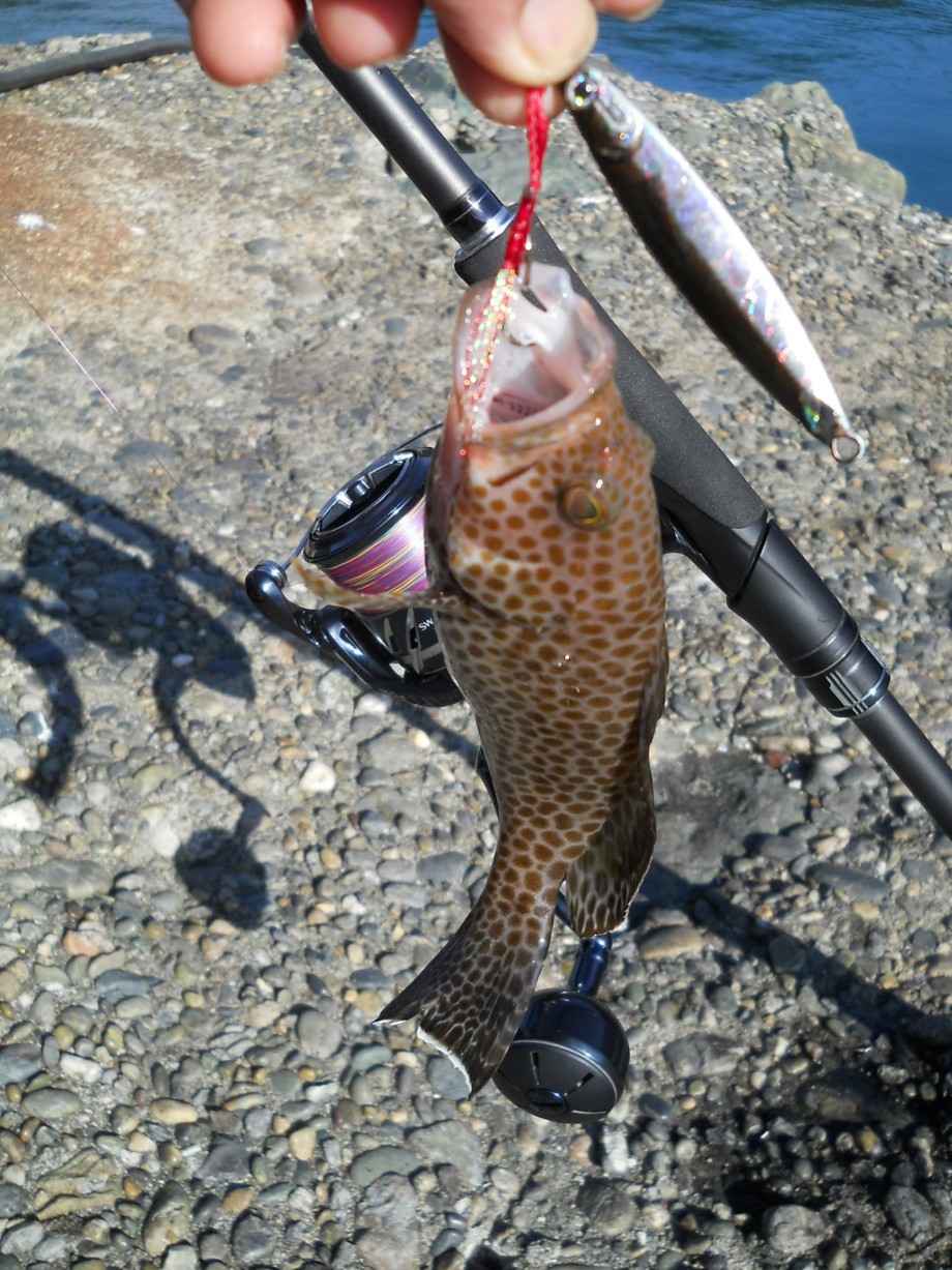 水深のある場所を探して投げ込んでいると、巻きシャクリのメタルジグがフワリと軽くなった数舜の後にゴツン!