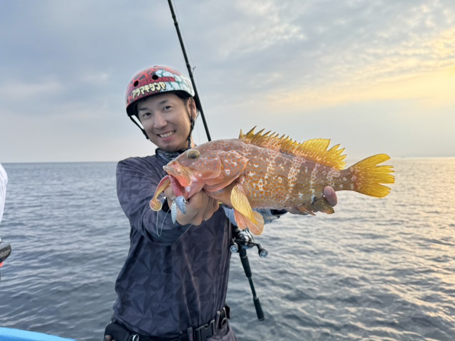 そんな合間を縫って、先日友人たちと一緒に、日本海の竹野エリアでアコウ(キジハタ)を狙ったボートロックゲームに行ってきました。今回は「いさき丸」の前田船長にお世話になりました。