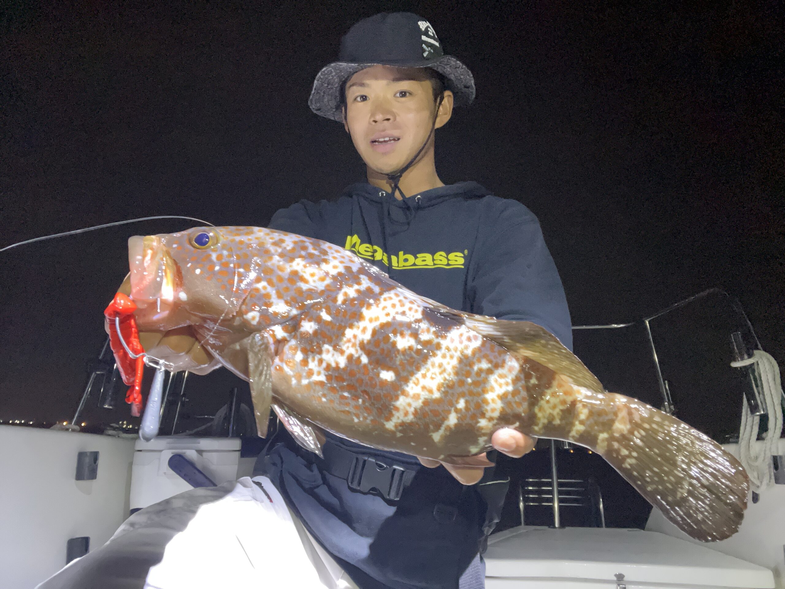 テンポよくサーチすると一撃で高級魚キジハタをゲット!