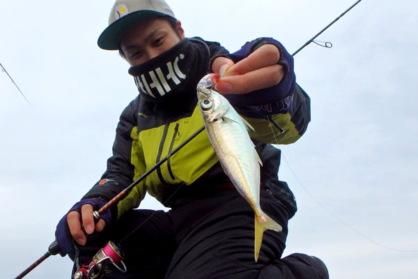 ところがダメ元で投げたポイントでアジが入れ食い状態に(笑)