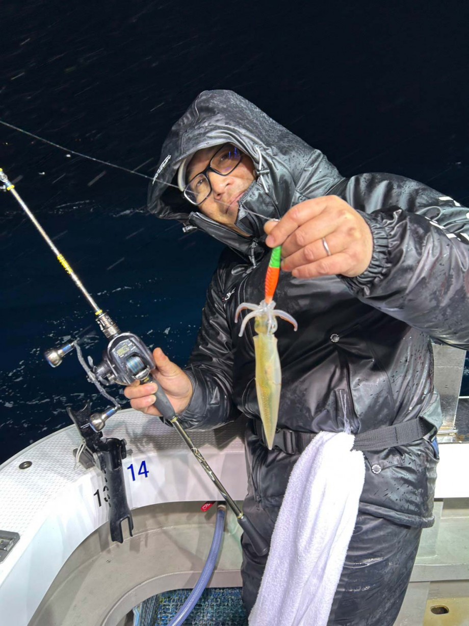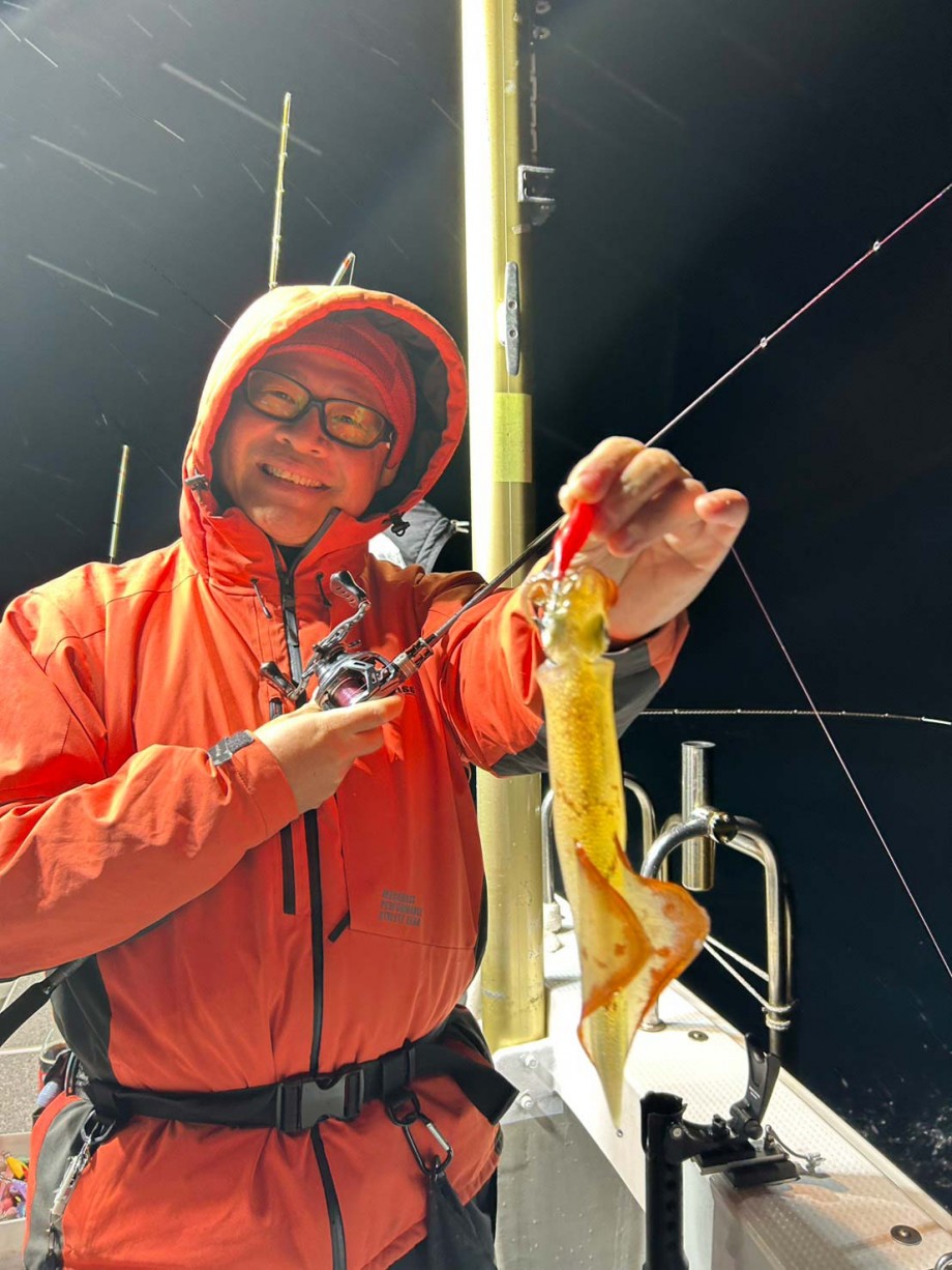 底から丁寧に探っていくと…ヤリイカからのコンタクトでしっかり穂先が入り待望のメスヤリイカと今季初対面。