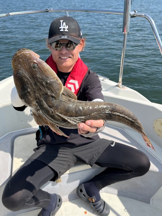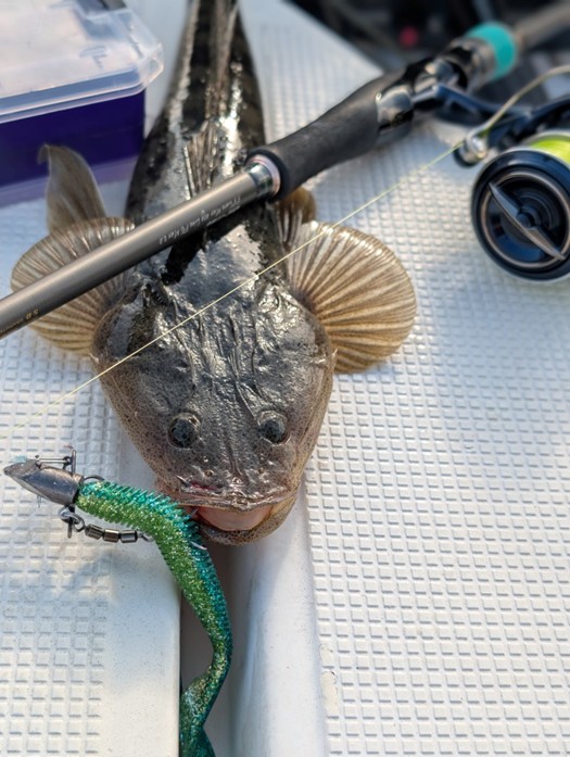 そこで船長にもっと浅いポイントに突っ込んでもらいました。というのも最近河川内のチヌゲームでマゴチが多く混じっており、それも数・型共に良い釣果が出ていたからです。