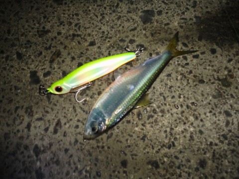 サッパの下のレンジ狙いで通し続けるが、ルアーは無視。