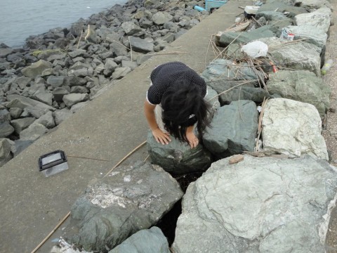 自分:「パパが釣りしてるとこ、カニがいっぱいいるんだよ」