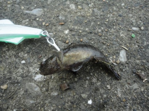 岸際ギリギリにキャストして、ゴロタ石に当てながら・・・