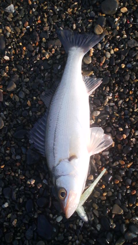 午前5時に到着すると早速イワシを追ってシーバスがボイルしていたのでサスケ95SSをセットし一投目…コツンっとバイトがあり合わせると30センチくらいのセイゴくん(^_^;)