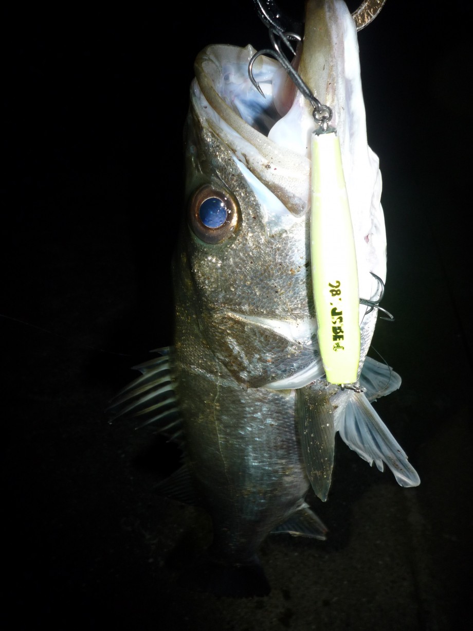 サイズのわりに重たいコンディションの良いシーバスゲット!!