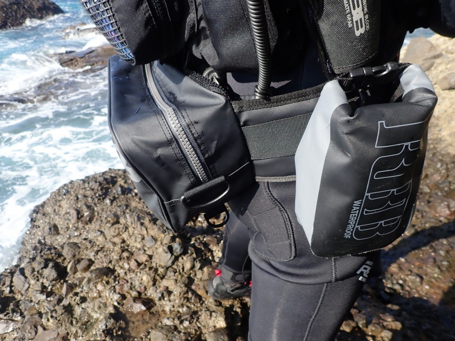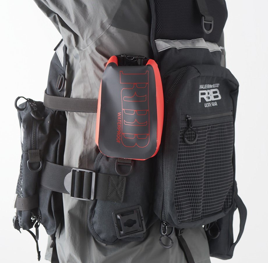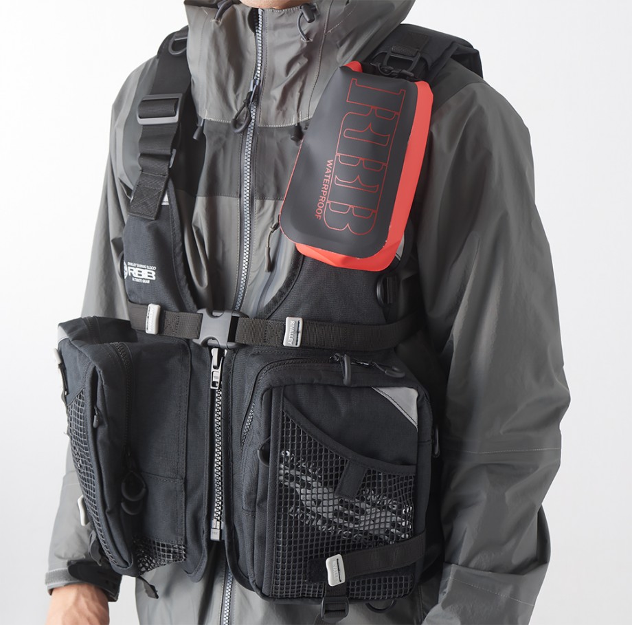 ロックショアベスト、ヒップバッグと組み合わせれば上半身は軽くでき防水性も手に入れられます。