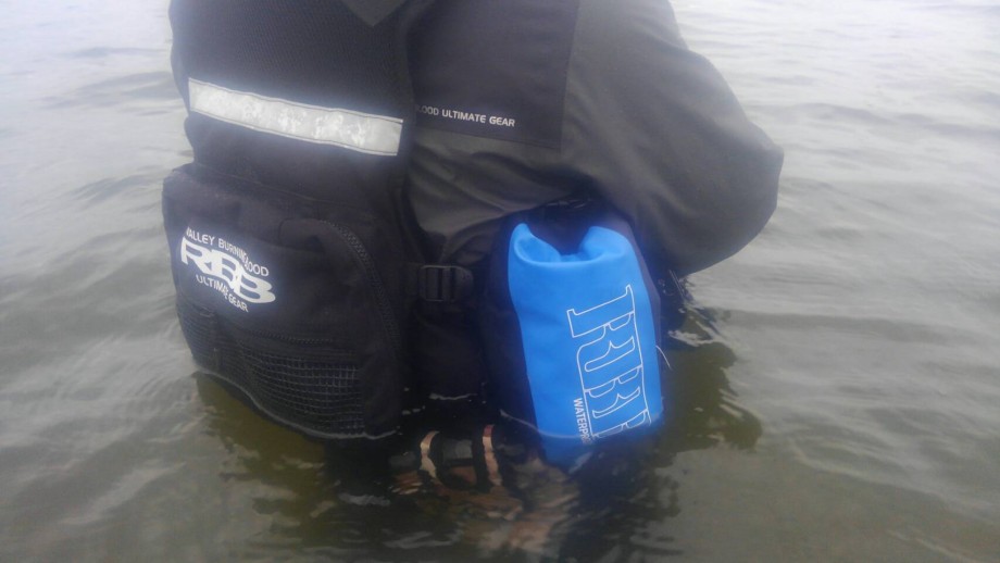 ウェーディングしていても防水なので中身が濡れることがなく、