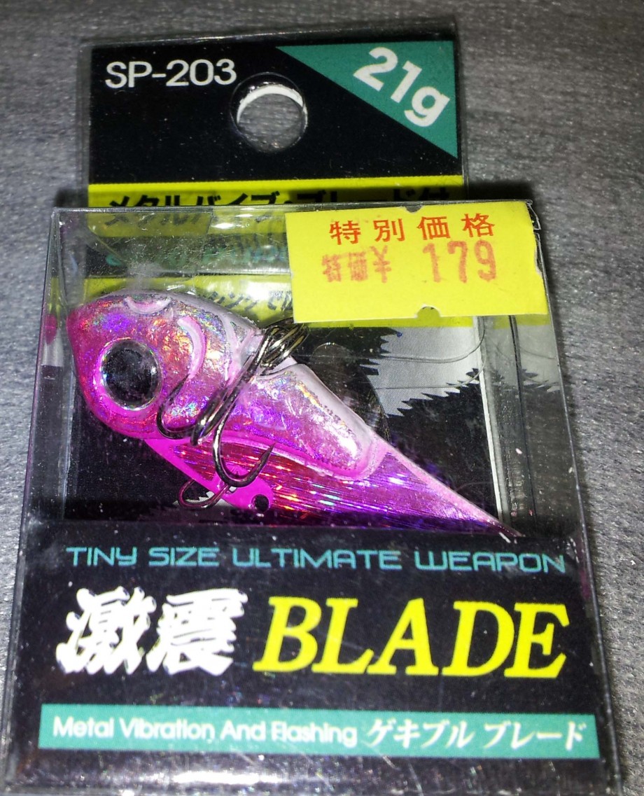 こう渋いと俺も解らないので、「好きな色は何?」って聞いて「ピンク」だと言うので、私が上げたルアーでピンクの物をセレクトしたのですが、これが足立区の綾瀬にある「つり吉」って言うショップで購入した、179円の21gの鉄板系で小型ブレードが付いているディテイルは「まめさん」みたいな超度マイナーなルアーでした。全カラー2個づつ買っても2,000円以内だったのですが、実は一度も使った事がないルアーでした。