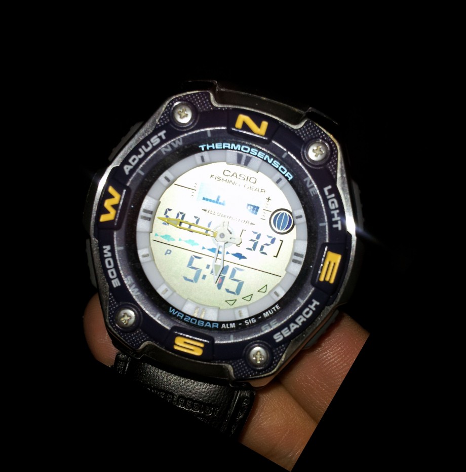 ※潮と月の関係と場所を選択し、最適な釣り時間を知らせてくれる時計。あんまり当てにはなりませんが、本日は好結果でした。