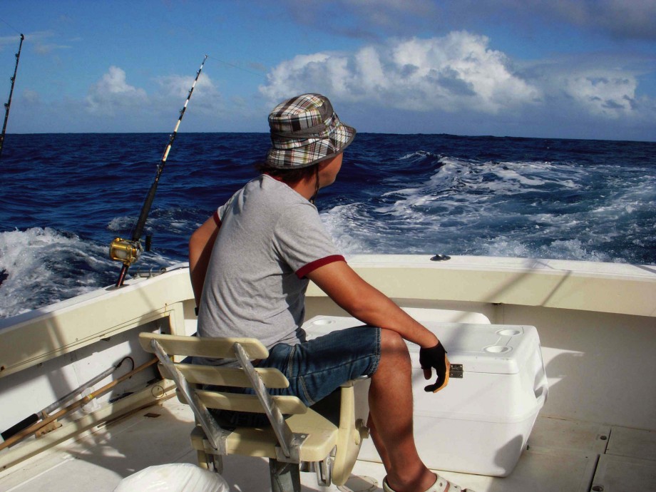 この底釣りではあきたらなかったにで、せっかくなので船をチャーターしちゃいました。トローリングでカジキマグロ狙い!