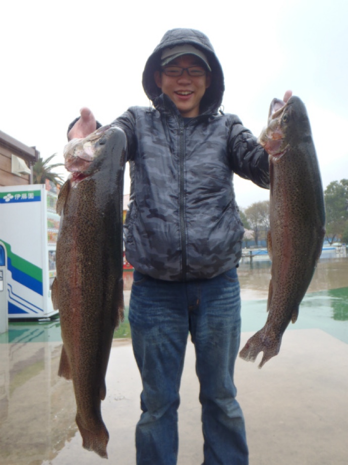 一匹(一枚目の写真の左、二枚目の写真のネットから、はみ出てるやつ)は70cm、いわゆるスーパー練馬サーモンてやつです(^-^)/