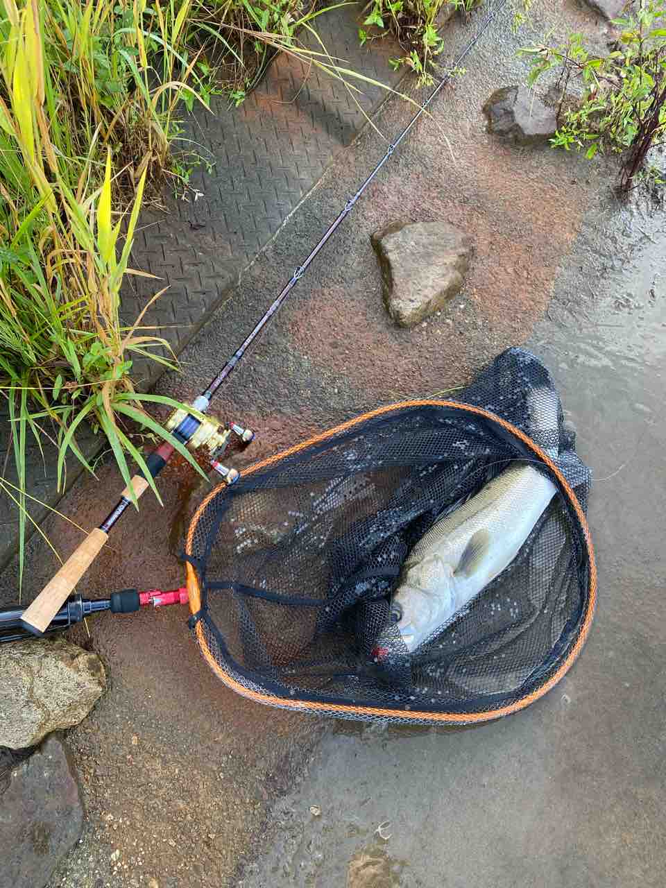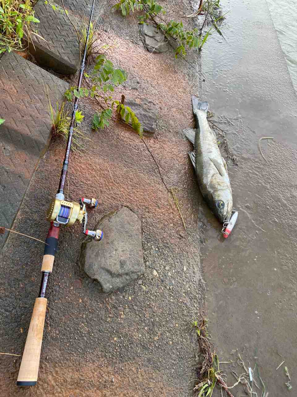 70cm前後のシーバスを増水の中