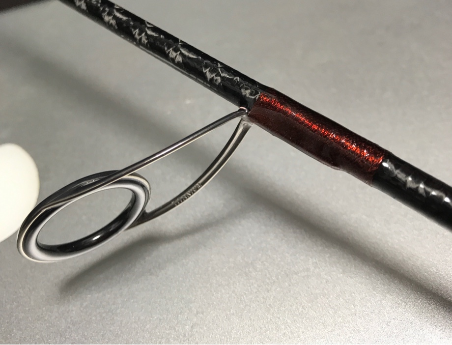 シンプルにしたかったので、飾り巻きなしのシングルで、ロッドの色に合いつつ、面白くないような色にならないように...
