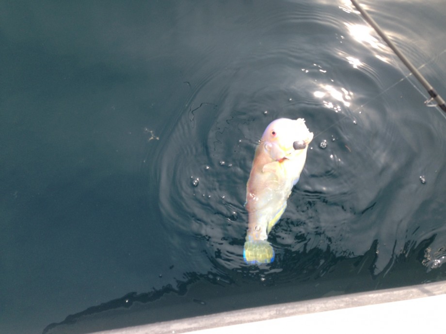 仕方ないので、とにかくこれまで実績の高いブレイク沿いに無理矢理修正舵入れながら流すも・・・釣れるのはホゴやらイラのみ。ホゴはすげー高活性!しかし、ホゴが高活性な時は、鯛も活性高いもの、みつけさえできれば釣れるはず・・・と意地になって探します。