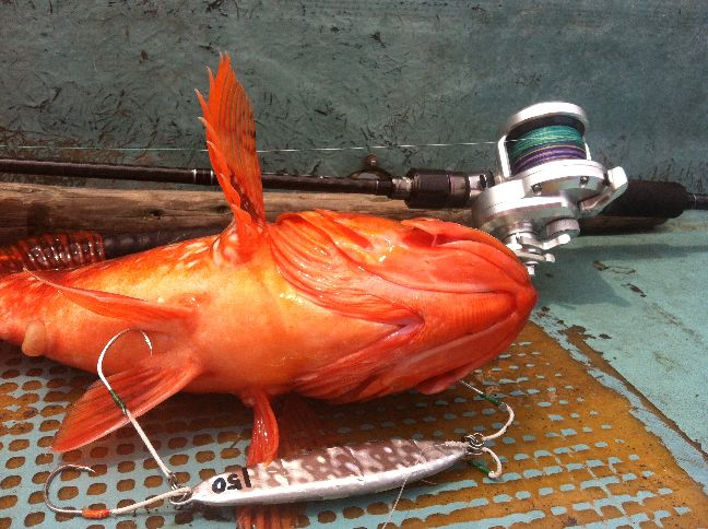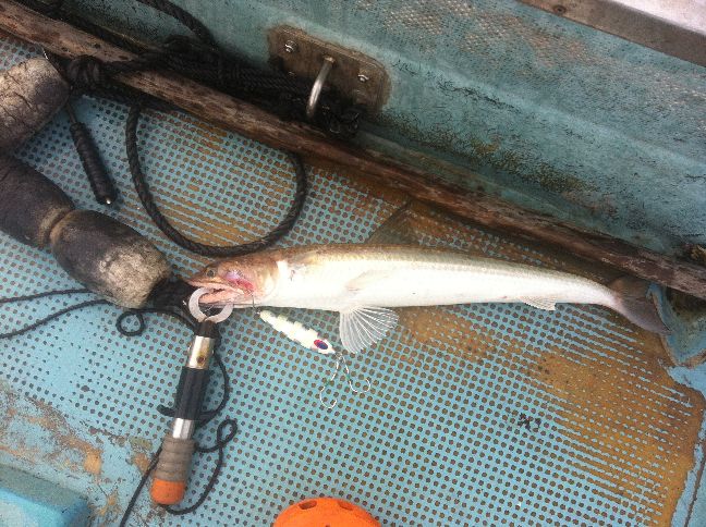 スピニングでは止まりません・・・・ので船でおいかけて・・