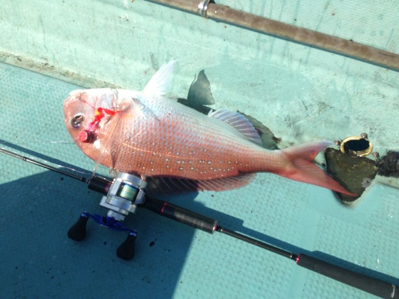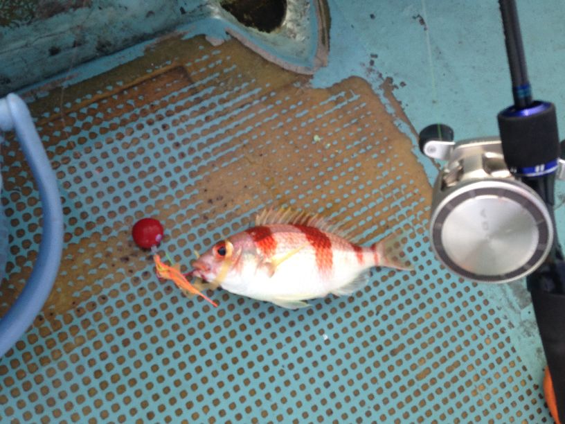 2号がそこそこの鯛をやって、ソルティガにつけてた20号では底とりが厳しくなったので、いつものパームスの25号に持ち替えたら、、、