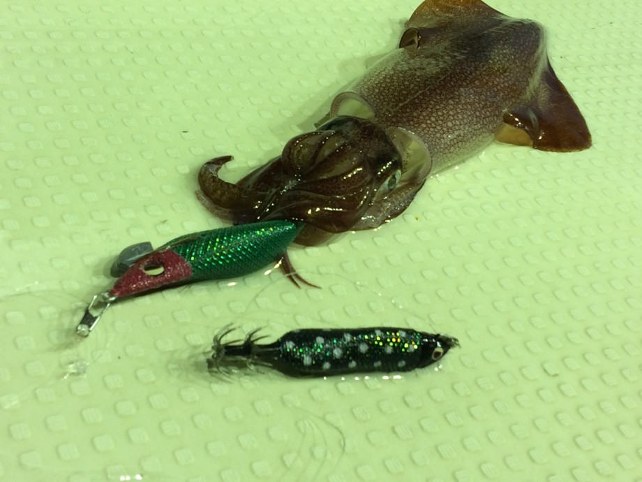 メタル番長とエギ番長の2点仕掛けですが、後半はジグヘッド+ワームをセット。
