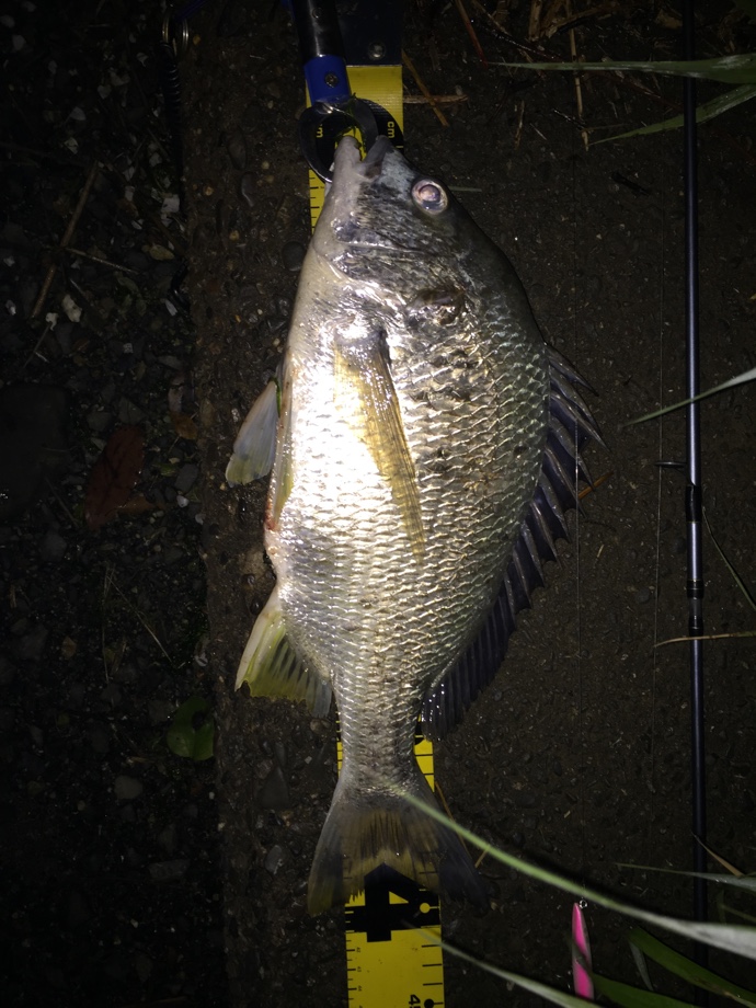 苦手なシンペンでキビレ 雨後の浜◯湖沿いの川にて… 下げ潮気味で イナが煩いなか(o^^o) 数投目に? 明らかに鱸じゃないバイトと ファイト後にご対面しました(o^^o) 0.4号PE リーダー2号ナイロン メジャクラ エアライツ83 iPhoneからの投稿