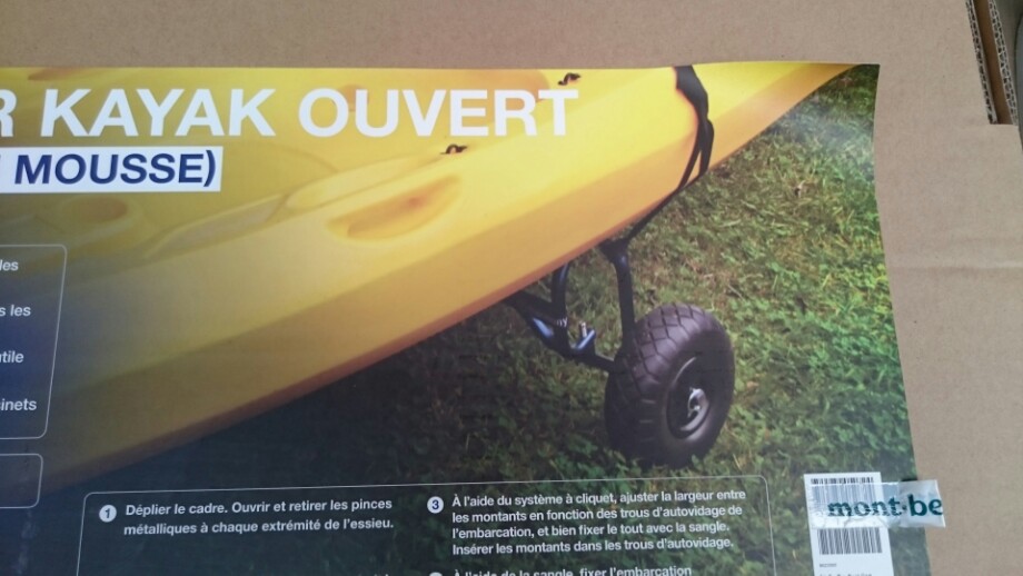 私のはシットオントップ専用なので、キャリヤーから2本角のように飛び出てる棒をスカパーホールへぶっ刺してキャリヤーにカヤックを載せ、ベルトで固定して引いていくタイプです。