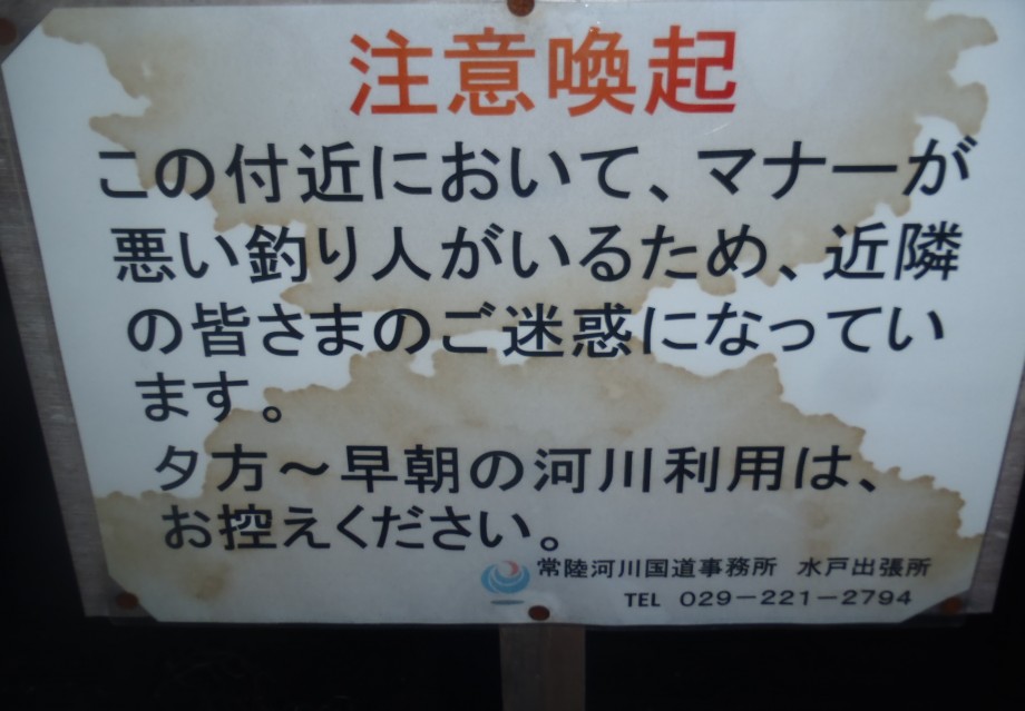ともかく、涸沼橋の上流のあたりは、昼間以外は釣り禁止に