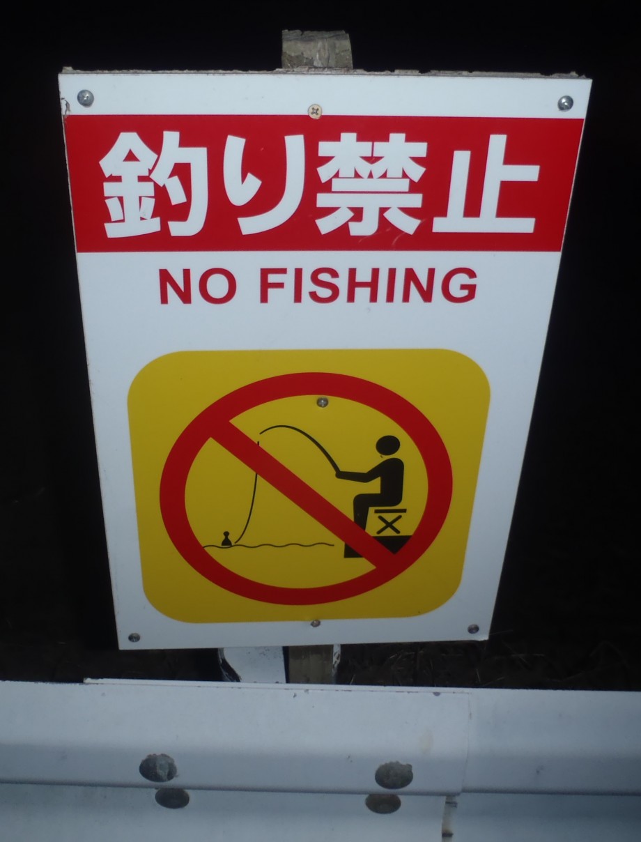 (・・)うん、ここは釣り禁止だから、看板のない場所で、と