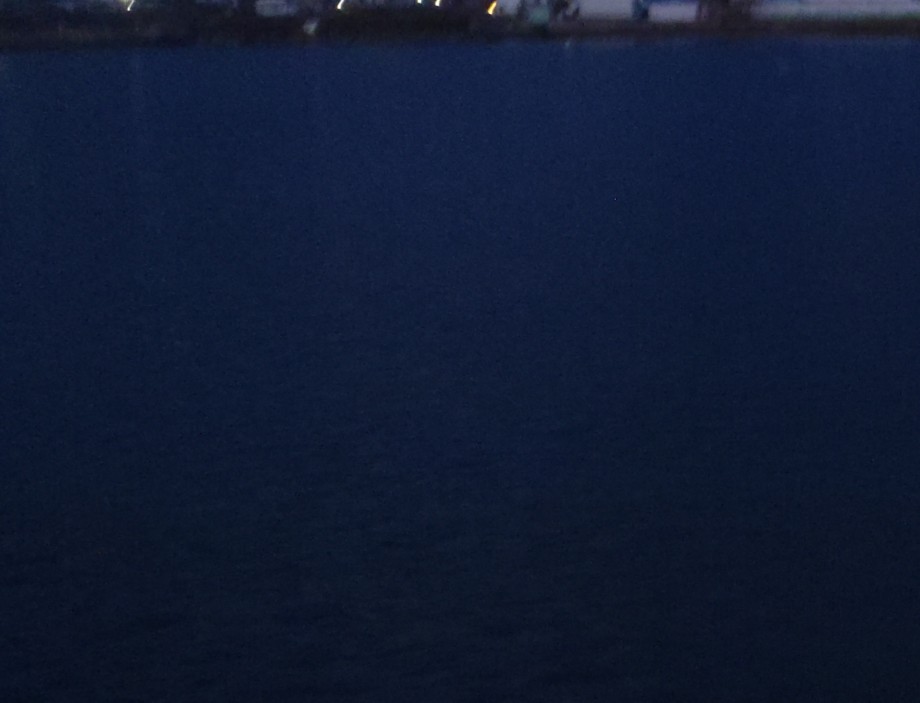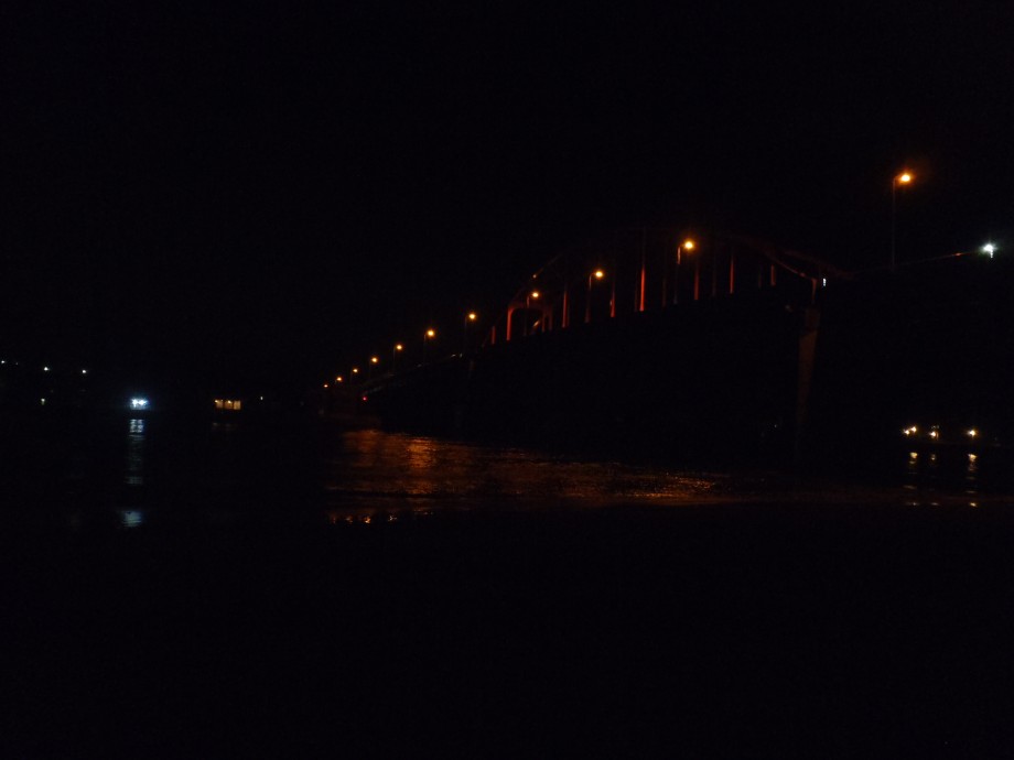 涸沼川合流点に到着。むこうに見えるのは湊大橋の光