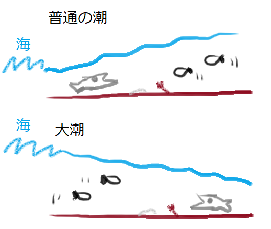 普通の潮なら、下げで小魚がシャローから追い出されたりして