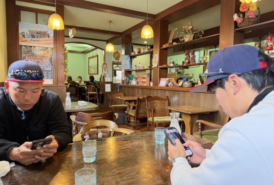 AM10時を過ぎた辺りでまこさんとぺーちゃんは休憩するらしい。釣具屋に行くそうだ。