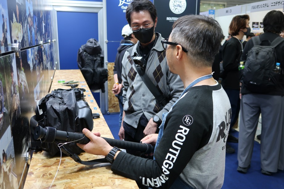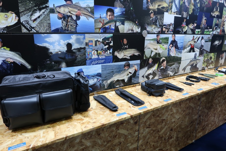 大人気のオリジナルライフジャケットやウエストバッグ、ランディングシャフト、ポーチ、プライヤー、メジャーなどの雑貨をお手に取って見ることができます。