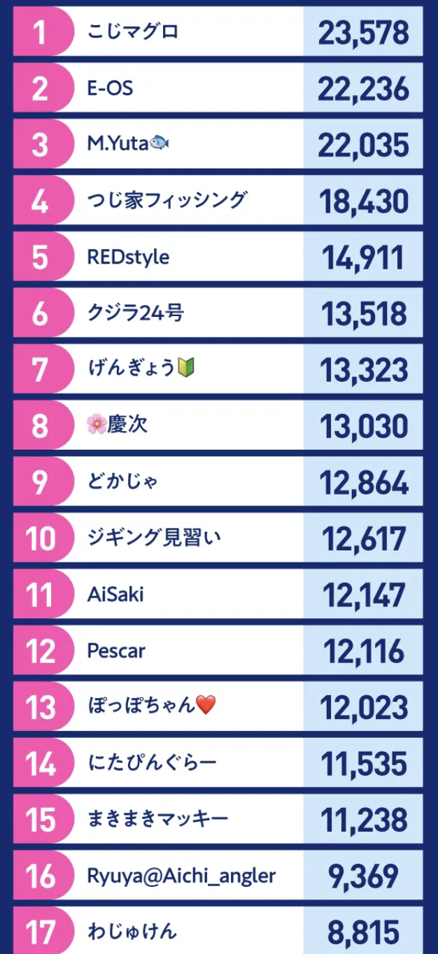 この数字から見えてくるのは、当確ラインは4位以内=18,000ポイント という構図。そして、10位以内の争いは「15位以内の人たち」で熾烈に競り合うと予想されます。