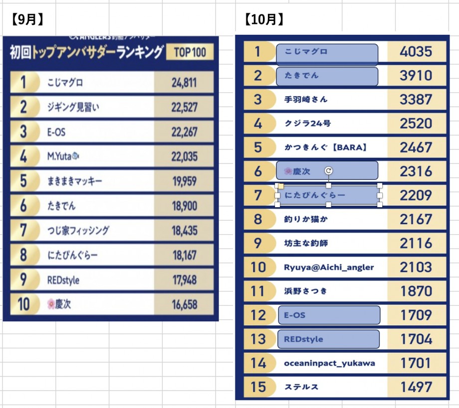 10月の中間発表が行われました。前回トップ10入りして“おいしい思い”をした方々の動向を追ってみたところ、今回も上位15名中6名が引き続きランクインしていました。