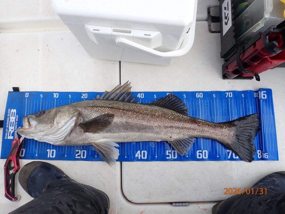 これまたビックリ、闘猛さんもジャスト80センチのランカーシーバス