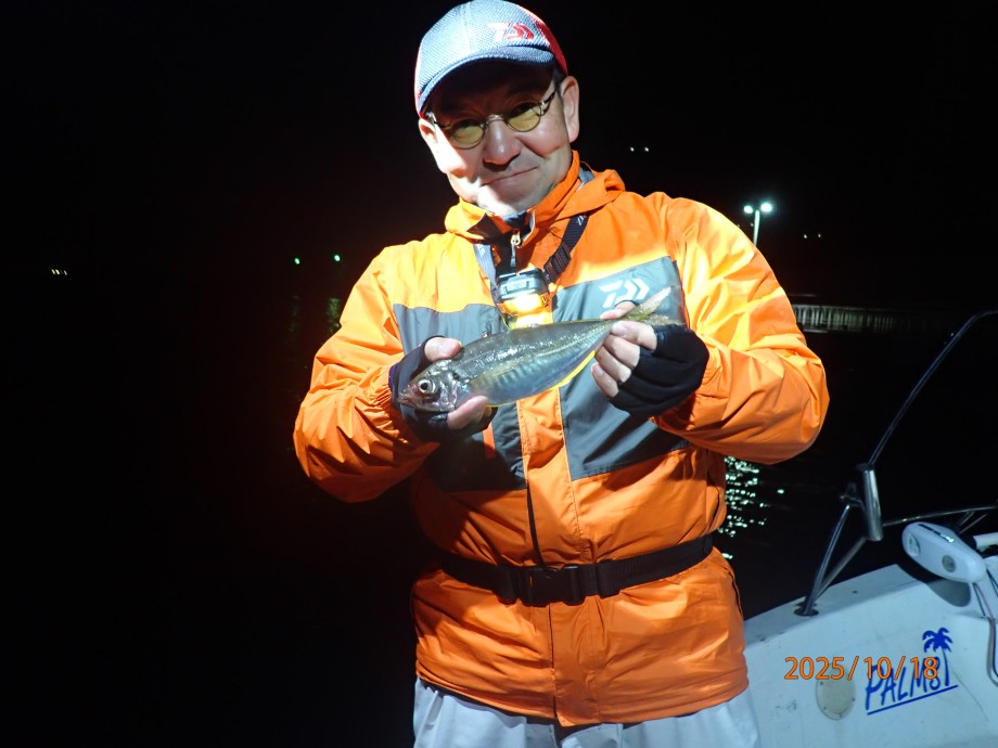 上がってきたのは27センチ、幅広で絶対美味しいアジをキャッチ