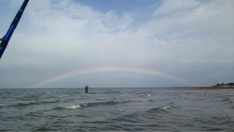 難しいこの土地で、初めてきたこのオレに釣らせるとは…後光ならぬ虹が掛かっているこの御方は神なのか…