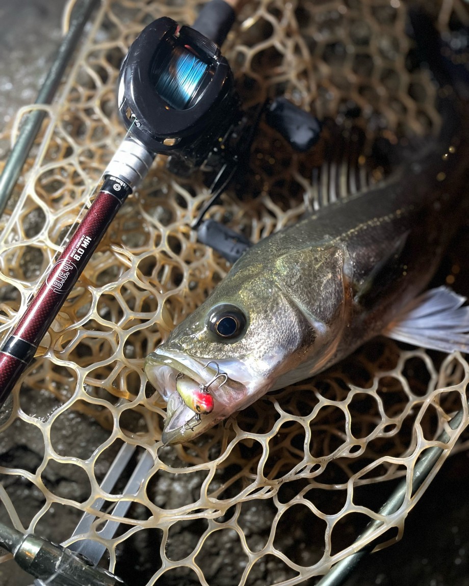 様々なベイトパターンに適応するため、自分のルアーローテションは軽いところでは10g前後、重いところは2oz級ととにかく幅広いルアーを使用します。BC4 8.0MHで一番気持ちいいのは20g前後ですが、幅広いルアーが投げやすく高い操作性で攻めの釣りができます。