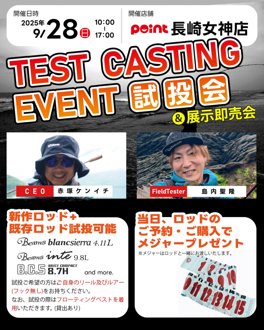 当日は、代表 赤塚ケンイチとフィールドテスター 島内聖隆が皆様をお待ちしております!