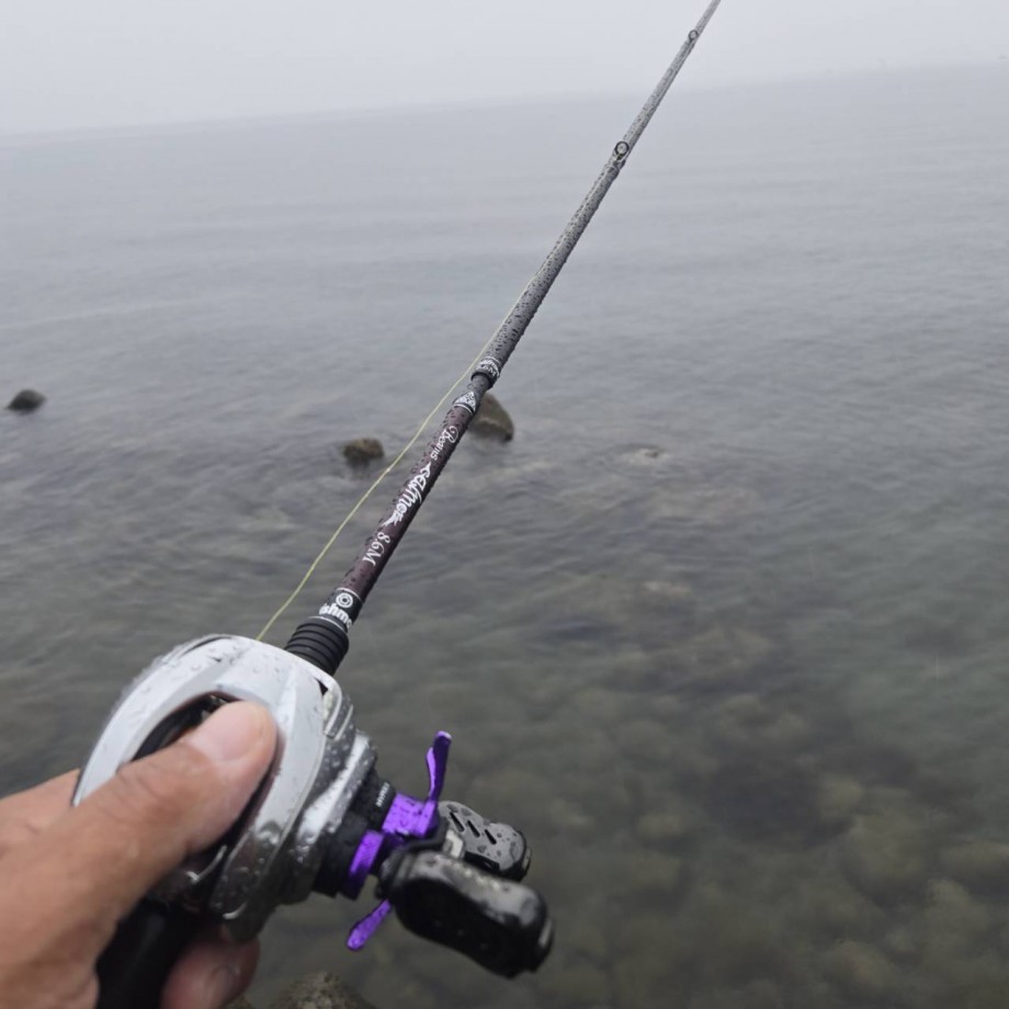 海藻の奥まで遠投後の良型相手でも安心したやり取りが可能なロッドでした。