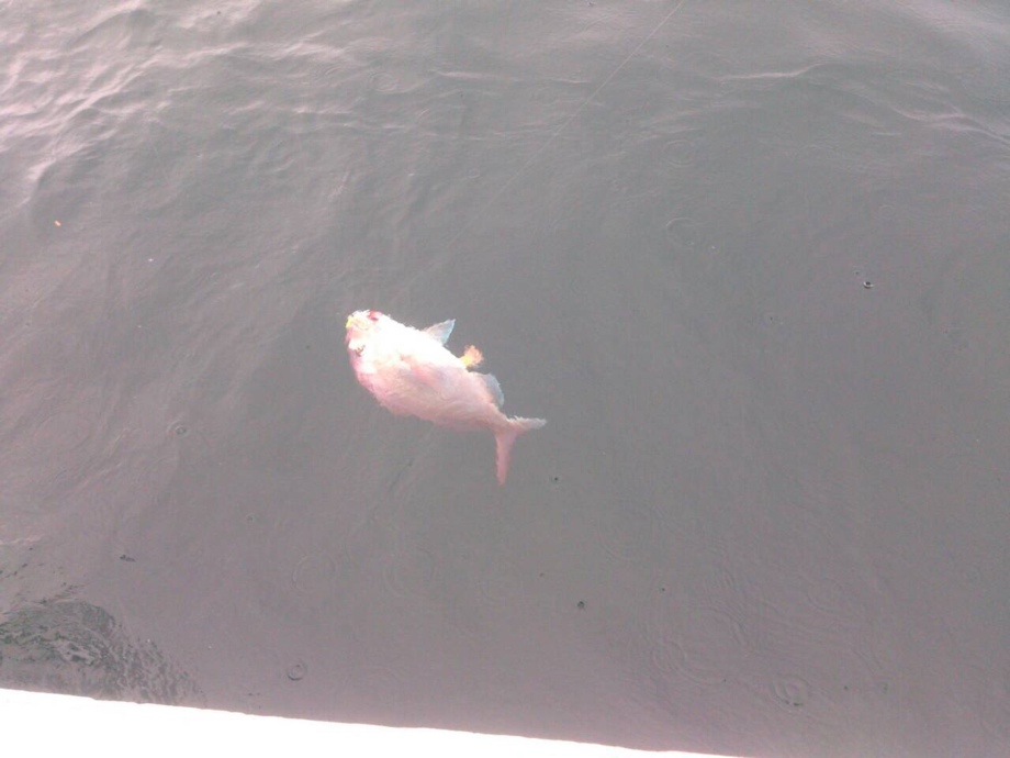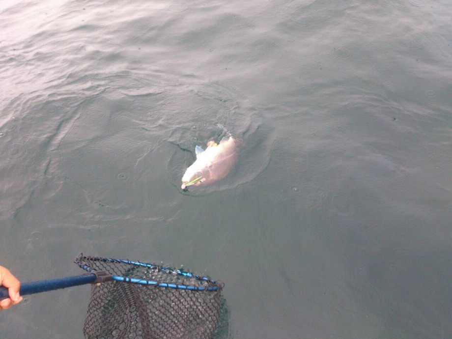 真鯛の引がどんな感じかわからずに、半ば強引にやり取りをしていたらNさんや船長からのアドバイスもあり落ち着いてやり取りをしてようやく本命らしき姿が見えてきました!
