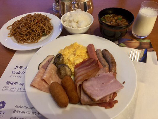 ホテルのブッフェで朝食。