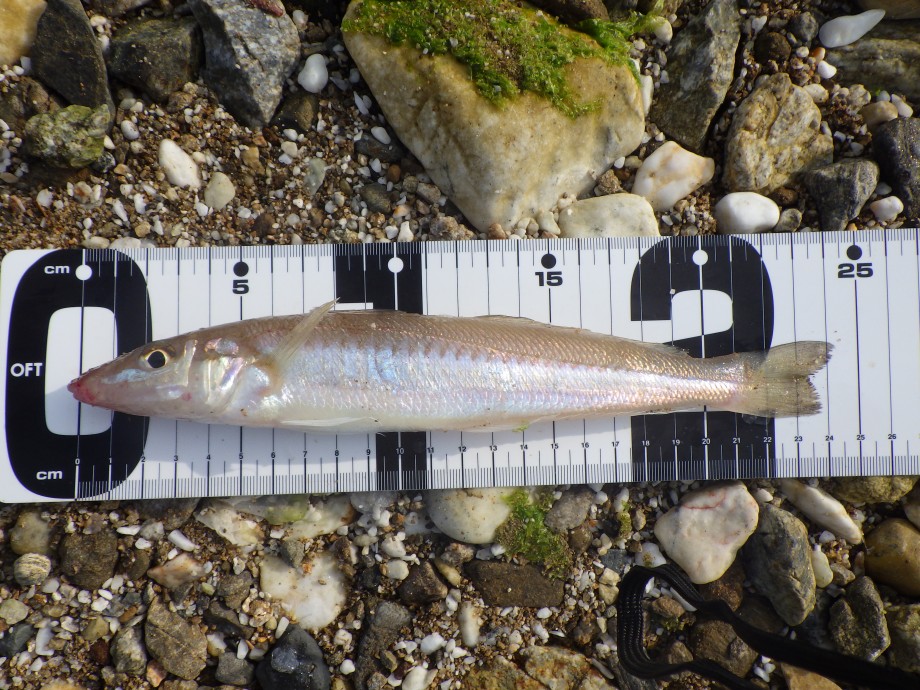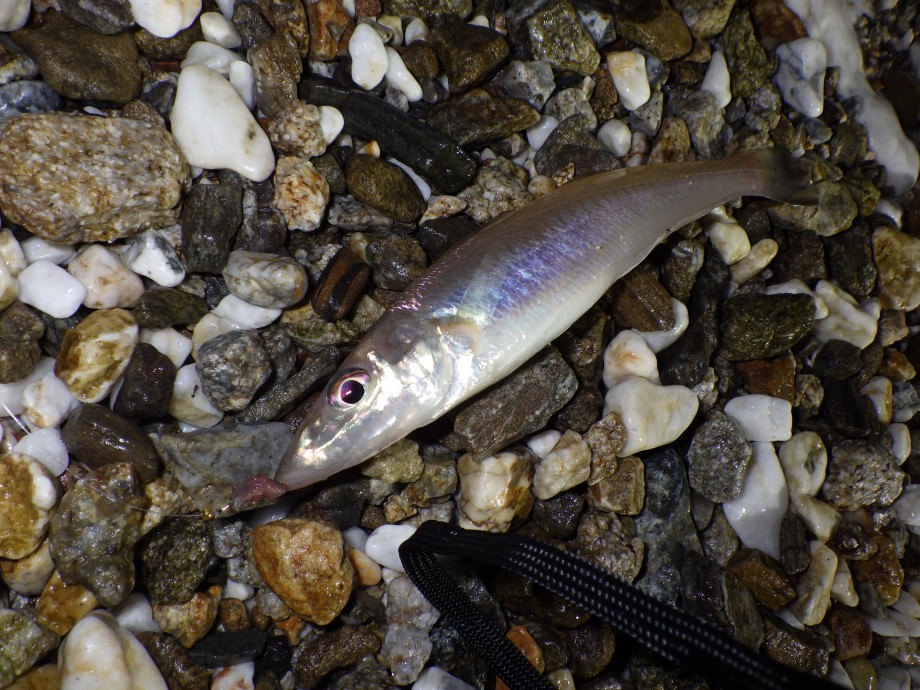 その帰りに漁港で投げ釣りをしていたらかなりデカイキスが何匹か釣れた。