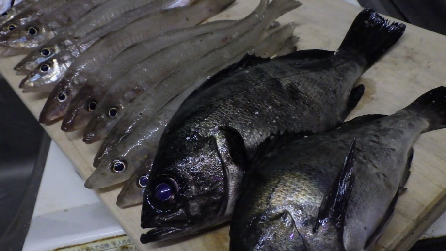それから復活したので魚捌いて、風呂入って、釣れたての魚で一杯♪
