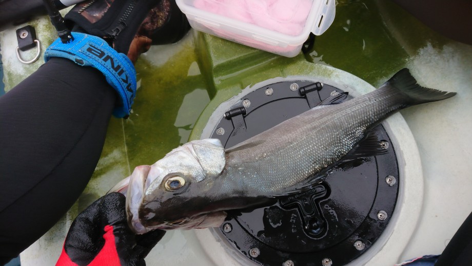 緩めのドラグで魚を掛けたらまずはロッドホルダーに竿を立ててカヤック漕いで沖に逃げますw