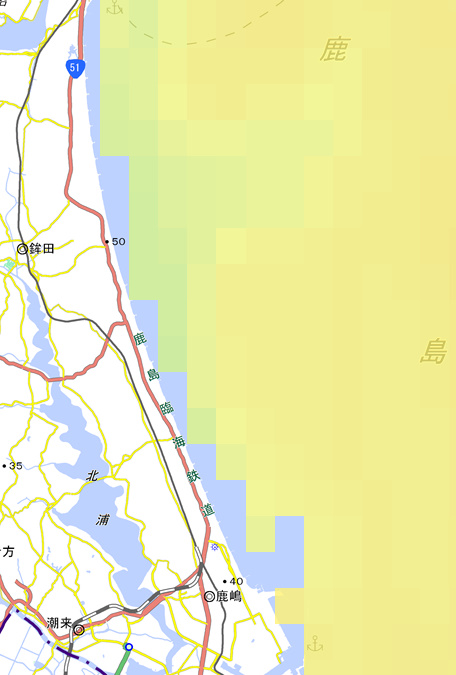 海水温を確認すると50と小さく黒字で書いてある辺りが湧昇でもしているのか水温低めでその南は水温が高い黒潮の影響があります。