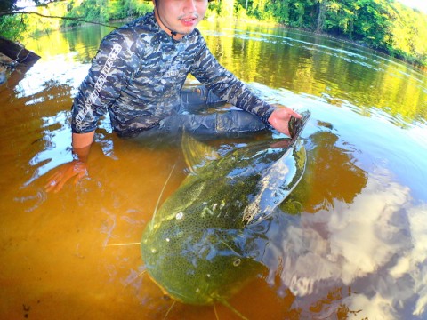 この個体は20kg程度の魚体。本当にナマズは可愛い。